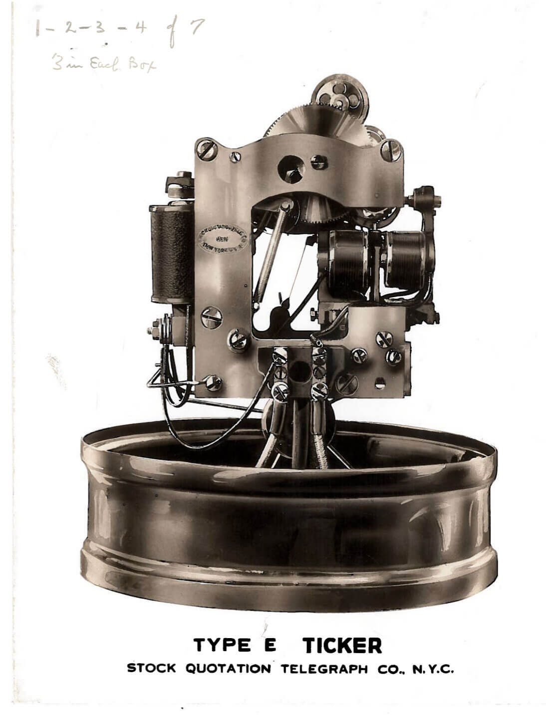 The Exchange built and moved into its own building on Bay Street. Technological advances led to the introduction of the first print-out-ticker which carried a series of trading prices as well as bid and ask offering quotations.