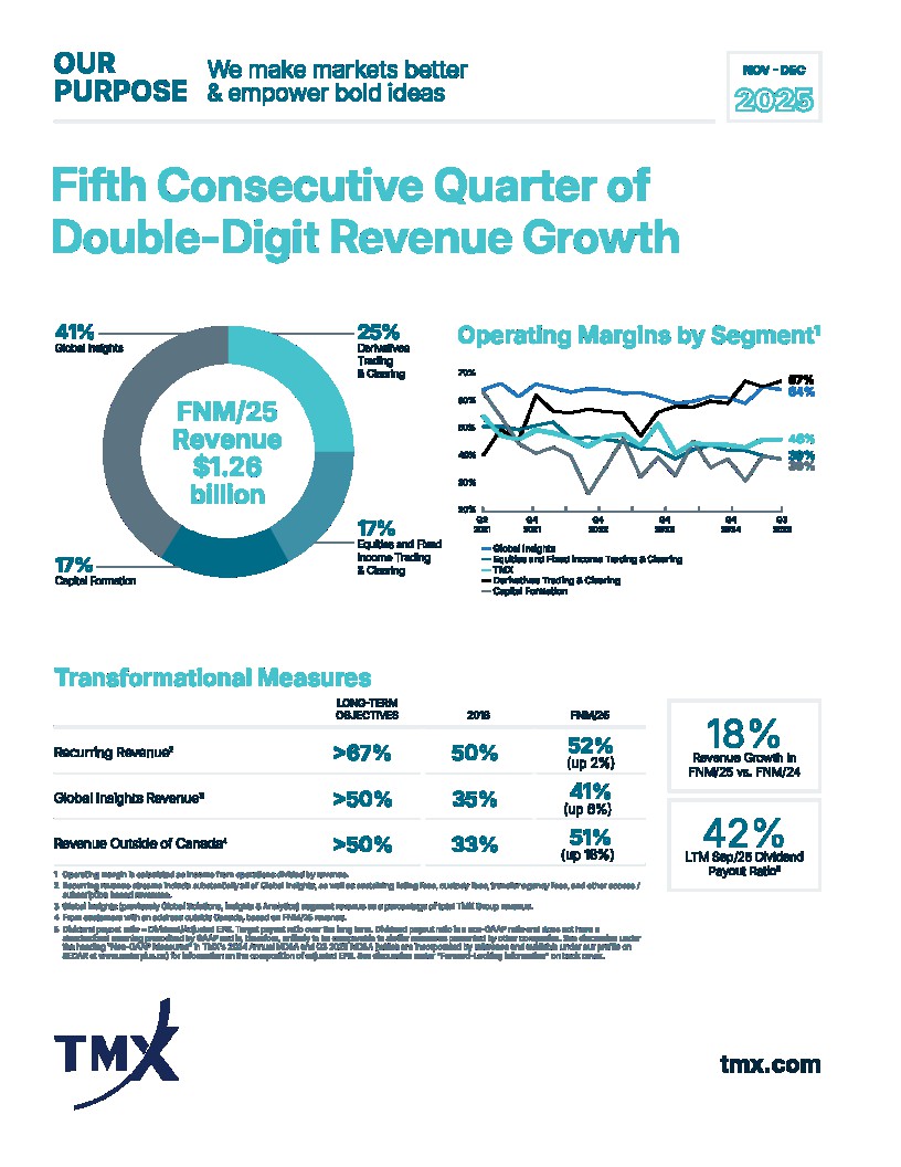 2 Dividend payout ratio is a non-GAAP ratio. See discussion under the heading "Non-GAAP Measures" in TMX's 2024 Annual MD&A.